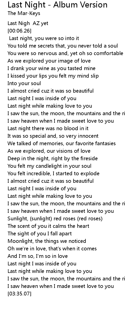 Last Night - Album Version Lyrics