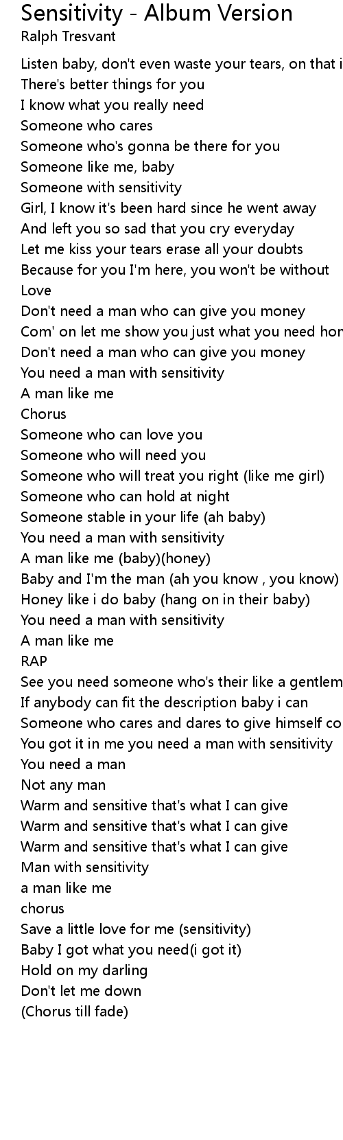 You got it in me you need a man with sensitivity