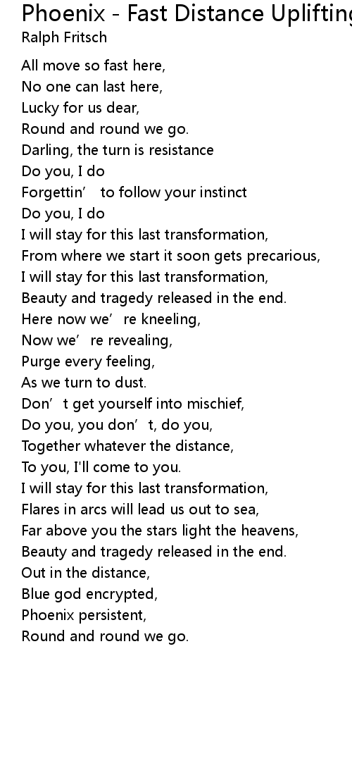 | Song | Phoenix - Fast Distance Uplifting Remix |