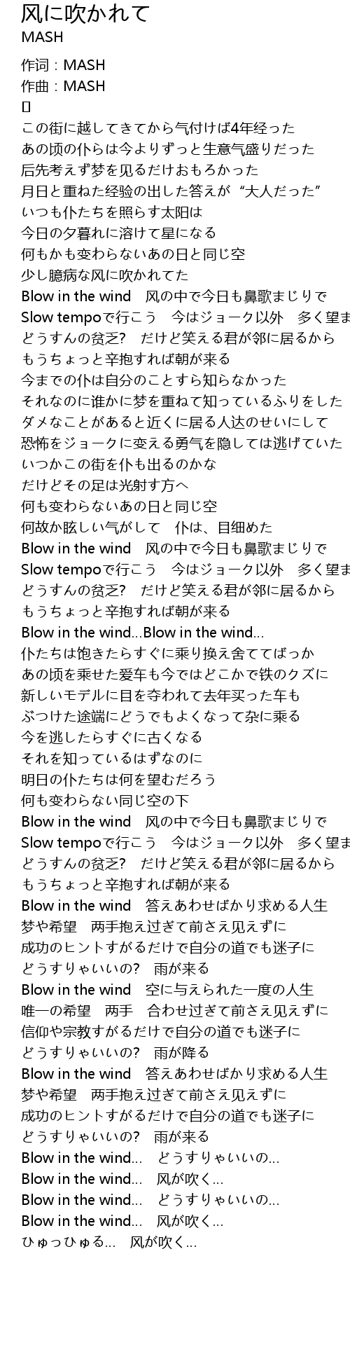 | Blow in the wind 风の中で今日も鼻歌まじりで | |