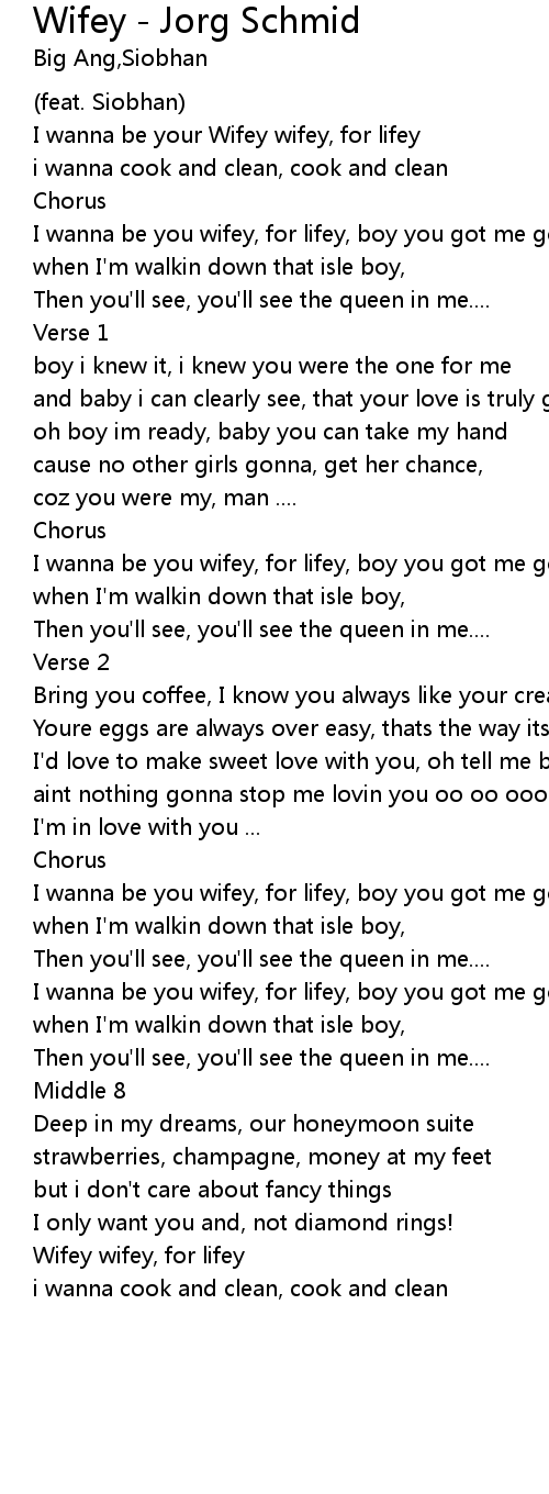 | I wanna be you wifey, for lifey, boy you got me going, crazy | |