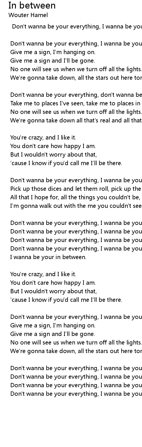 Don't wanna be your everything, I wanna be your in between (4 x)