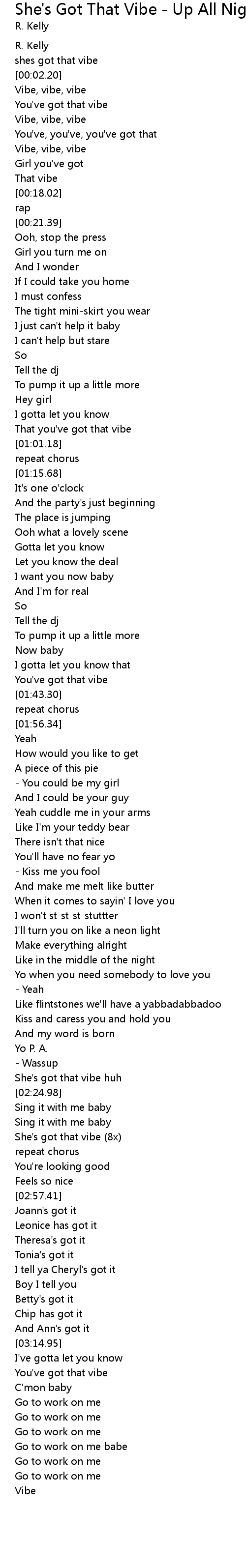 She's Got That Vibe - Up All Night, No Sleep Till Bedtime Mix (Sad Excuse) Lyrics