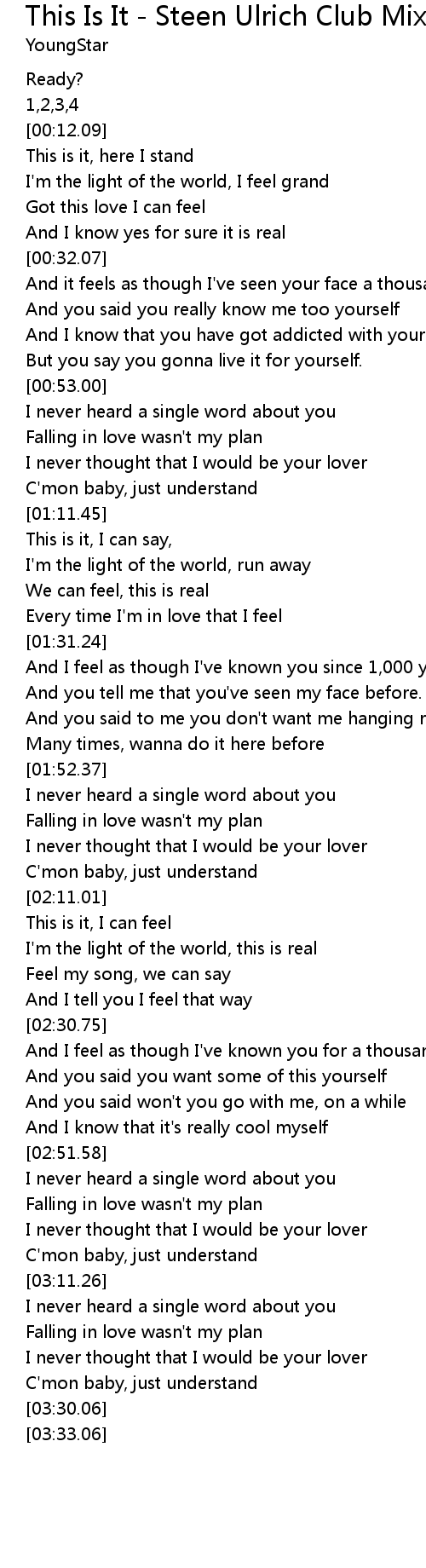And I feel as though I've known you since 1,000 years |