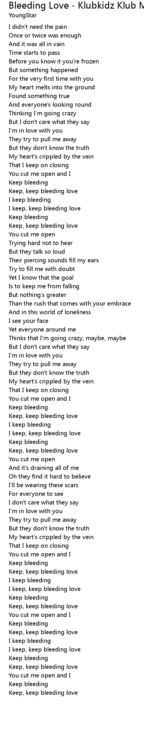 | [03:46.396] | Keep, keep bleeding love |