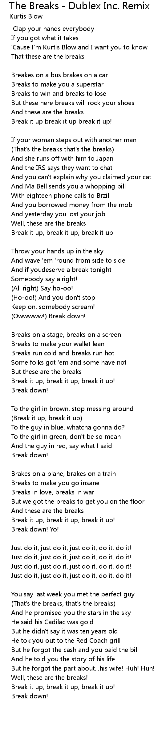 (That's the breaks that's the breaks) |