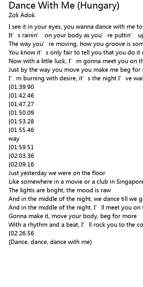 | [01:07.79][02:09.16][02:41.97][02:57.15] | Let’s dance the night away |