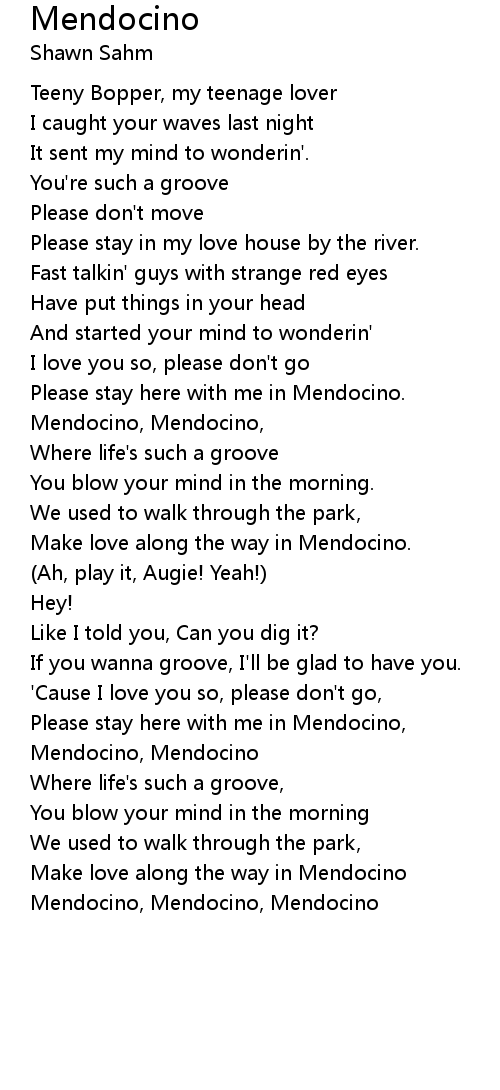 Please stay here with me in Mendocino, |