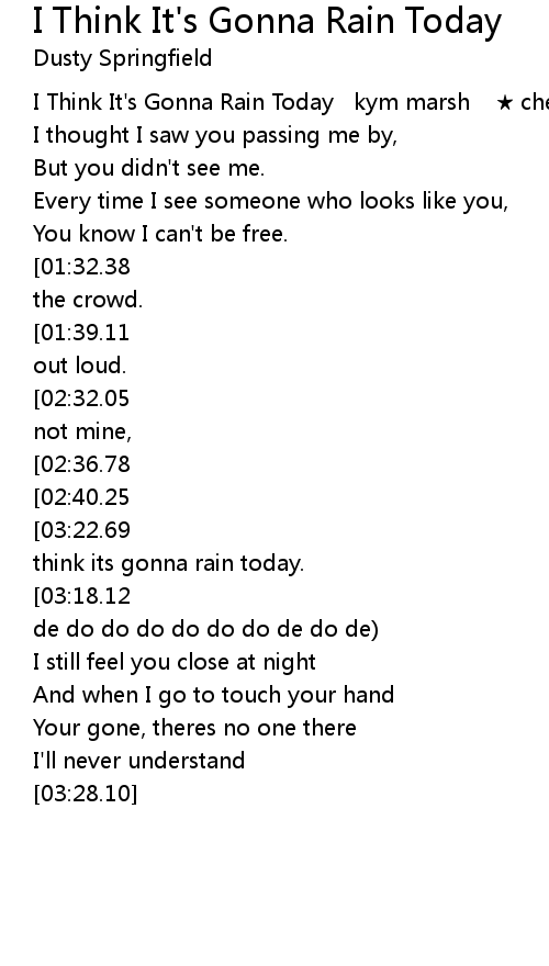 | [00:00.10] | I Think It's Gonna Rain Today kym marsh ★ cheekypig |