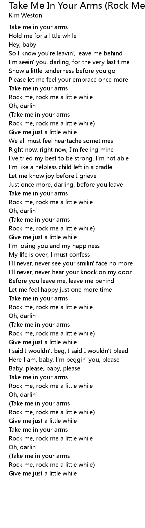 Take Me In Your Arms (Rock Me A Little While) Lyrics