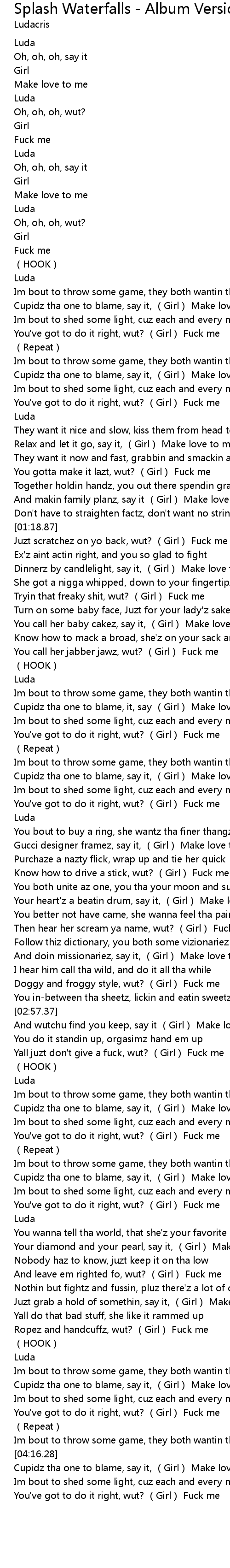 | [01:19.47] | Juzt scratchez on yo back, wut? (Girl) Fuck me |