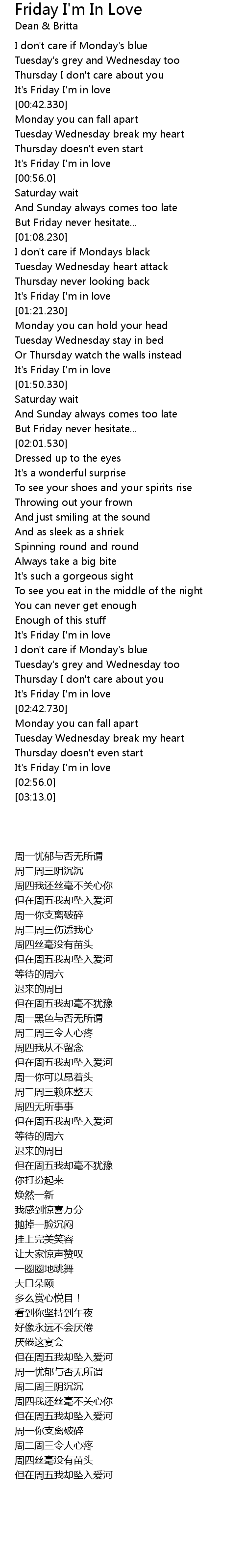 | [02:53.829] | It's Friday I'm in love |