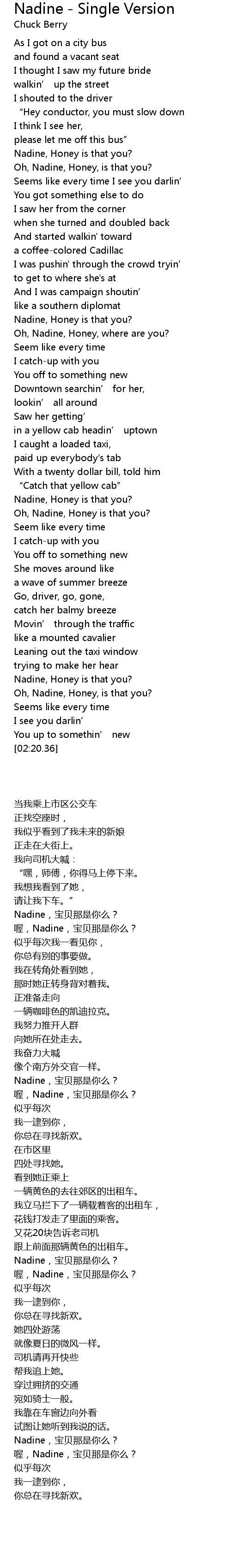 | [01:31.99] | Oh, Nadine, Honey is that you? |