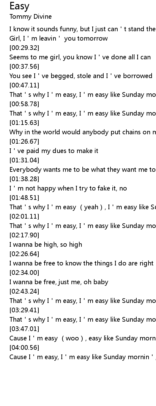 | [04:03.49] | Cause I m easy, I m easy like Sunday mornin, whoa |