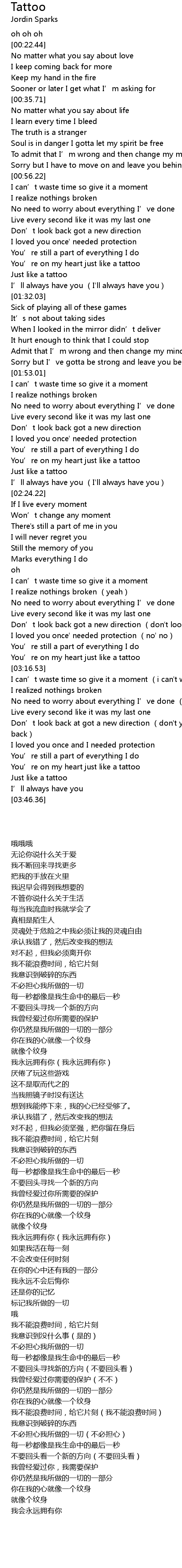 | [03:14.17] | You’re on my heart just like a tattoo |
