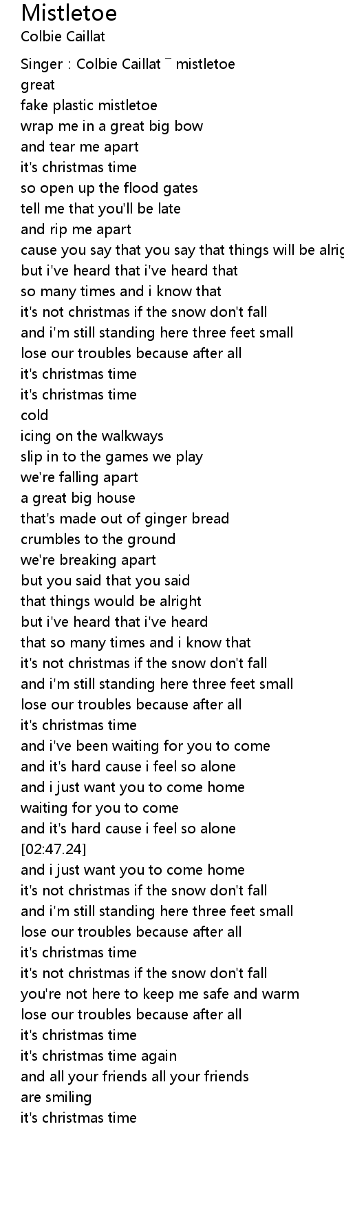 | [00:01.31] | Singer: Colbie Caillat mistletoe |