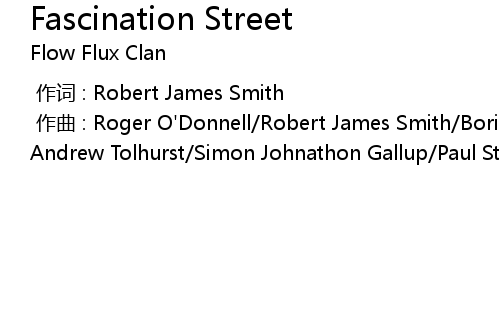 | [00:00.000] | zuo qu : Roger O' Donnell Robert James Smith Boris Williams Laurence Andrew Tolhurst Simon Johnathon Gallup Paul Stephen Thompson |