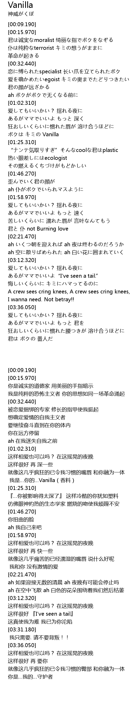 | [01:21.690] | ボクは キミの Vanilla |