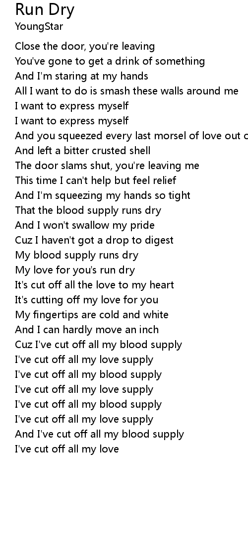 | My blood supply runs dry | |