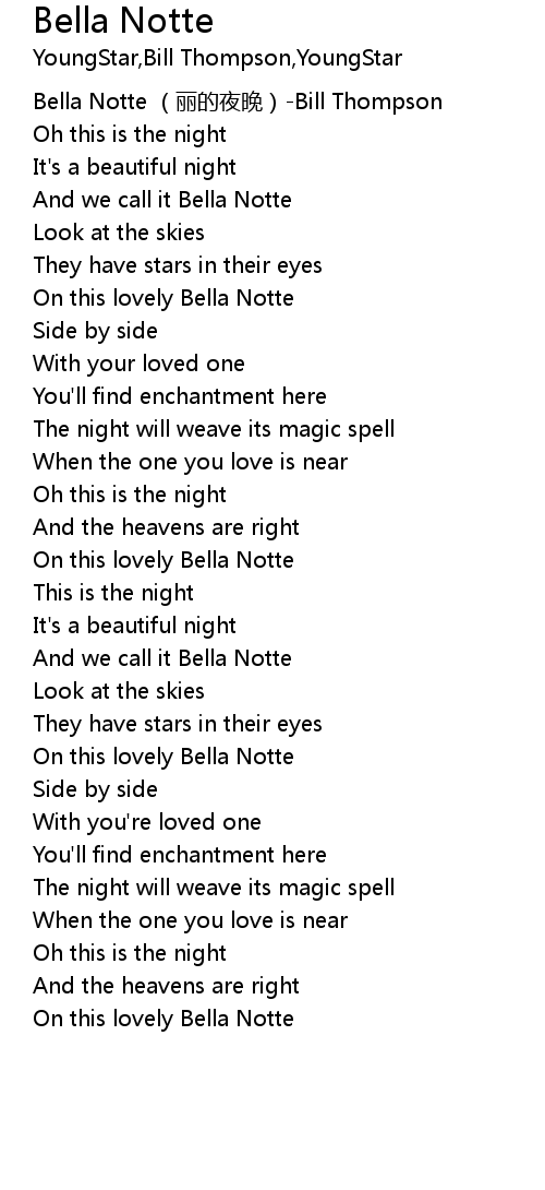 | [00:11.311] | And we call it Bella Notte |
