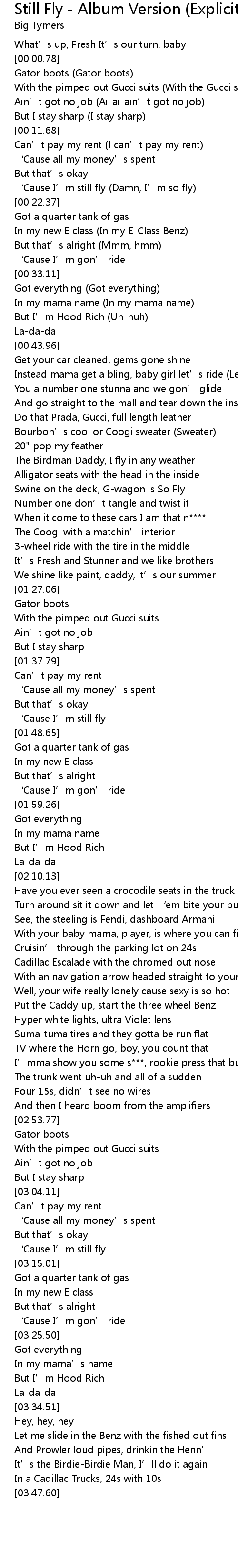 | [03:12.37] | ‘Cause I’m still fly |