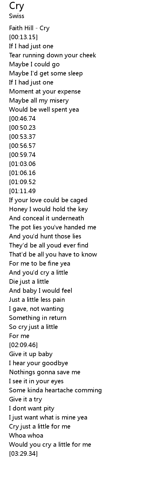 [00:00.00] Faith Hill - Cry