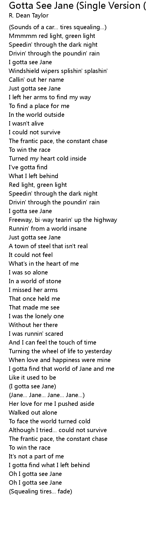 Gotta See Jane (Single Version (Mono)) - Single Version (Mono) Lyrics