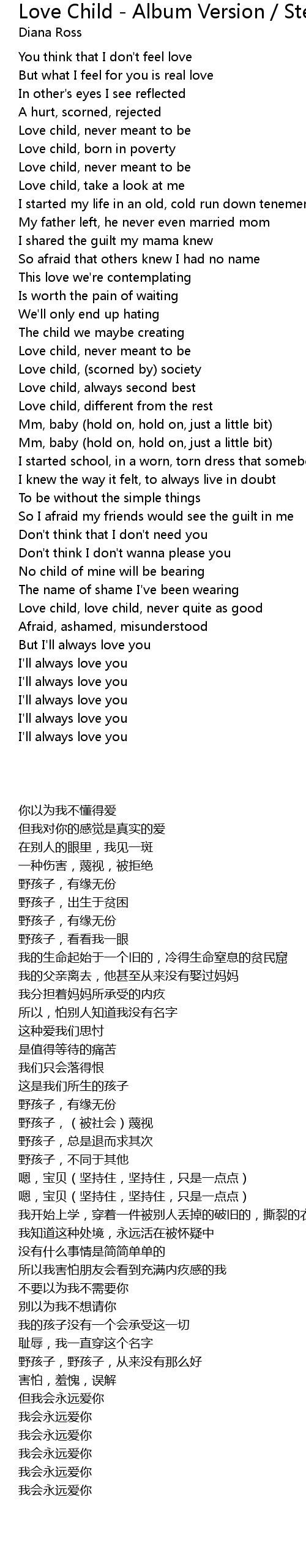 Love Child - Album Version / Stereo Lyrics