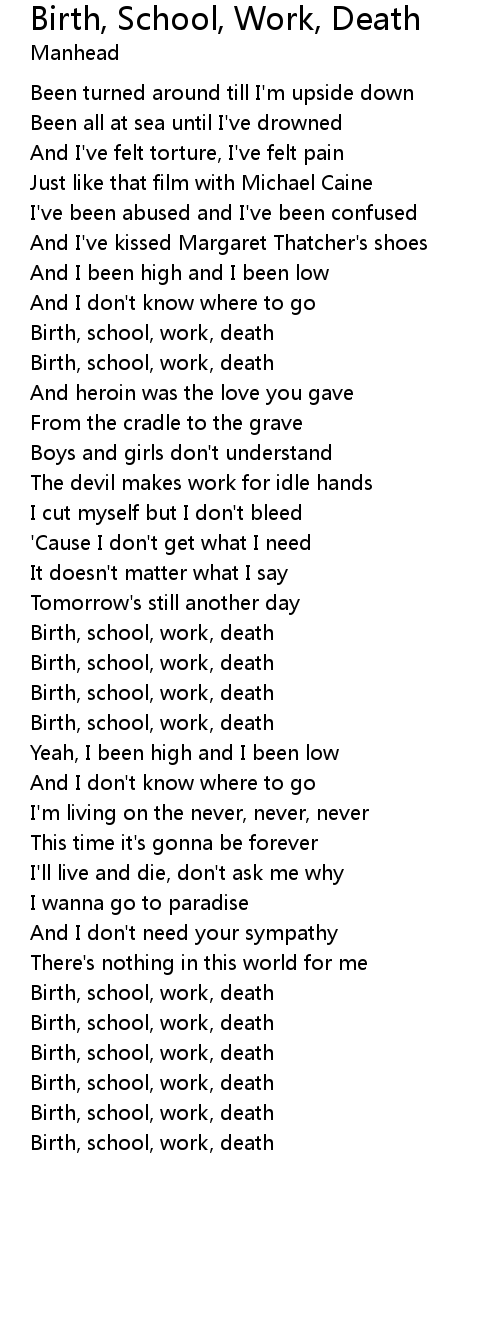 Birth, school, work, death |