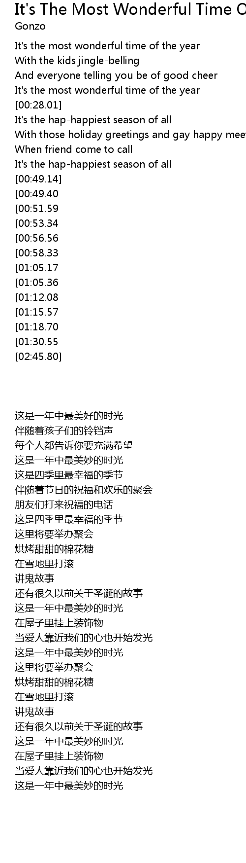 [02:05.86][01:05.36] It's the most wonderful time of the year