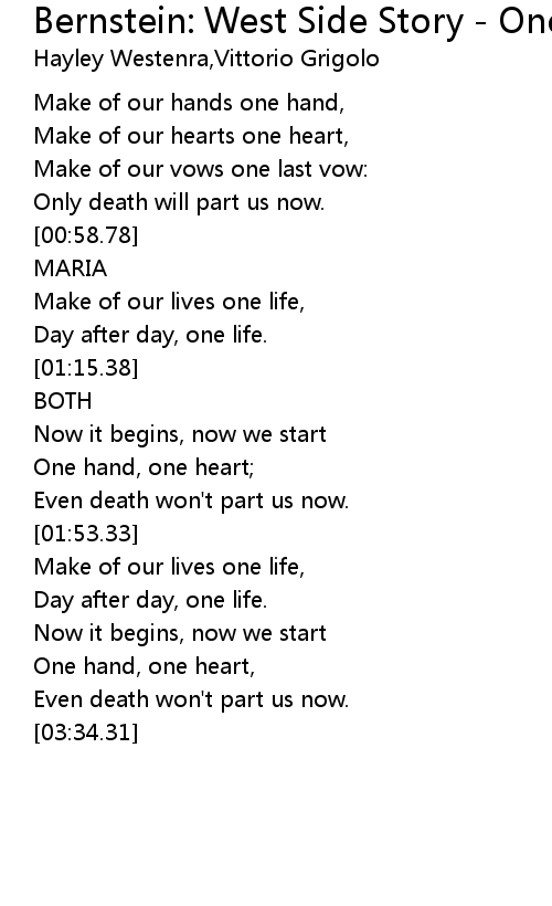 One hand, one heart, |