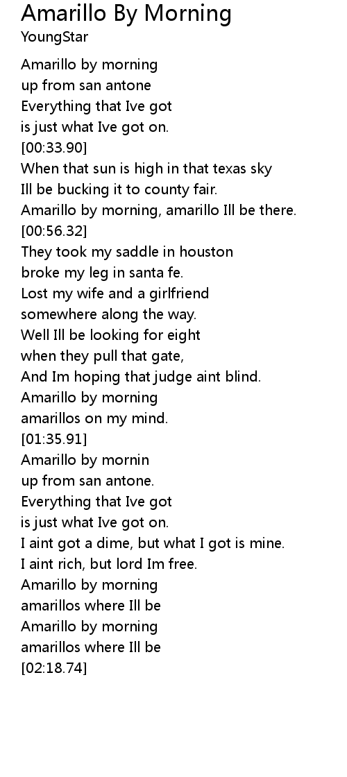 [00:44.70] Amarillo by morning, amarillo Ill be there.