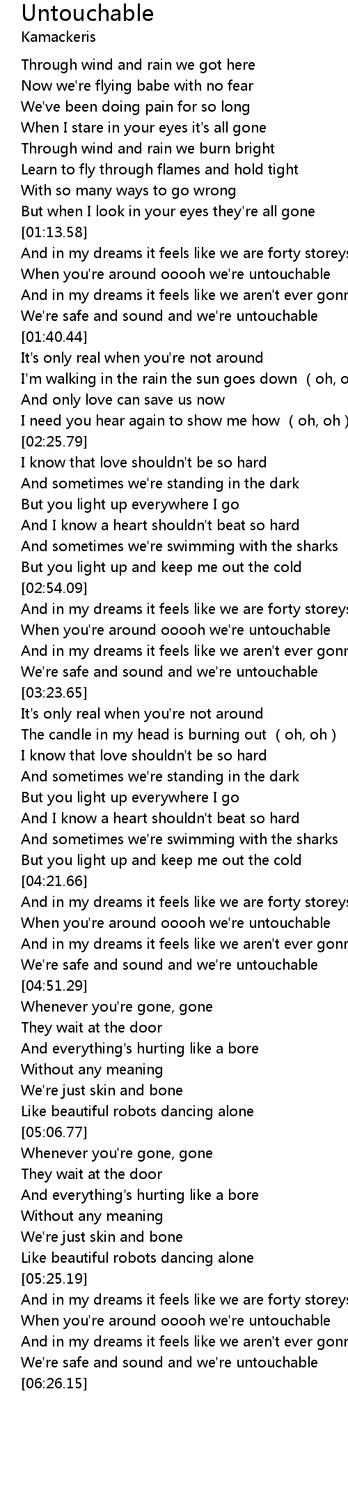 | [01:21.18] | When you're around ooooh we're untouchable |