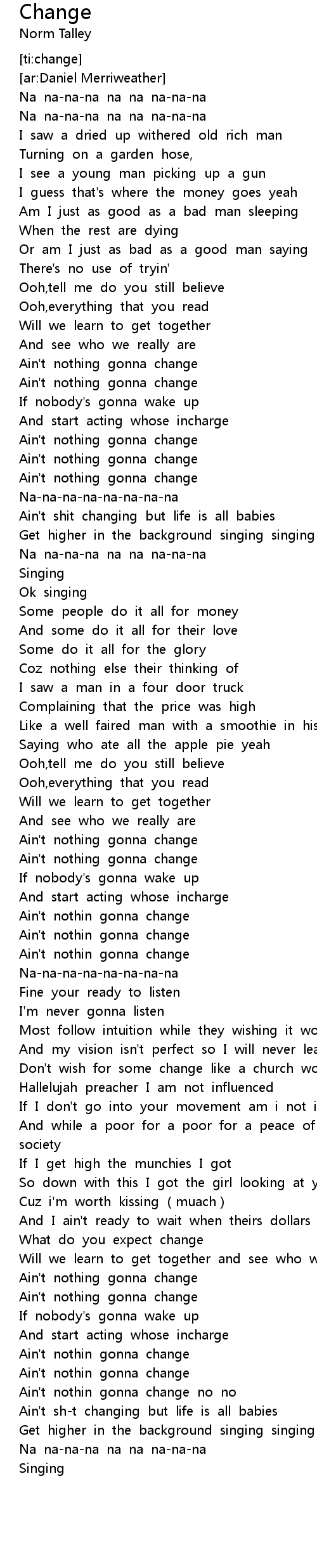 | [03:03.79] | Ain' t nothin gonna change no no |
