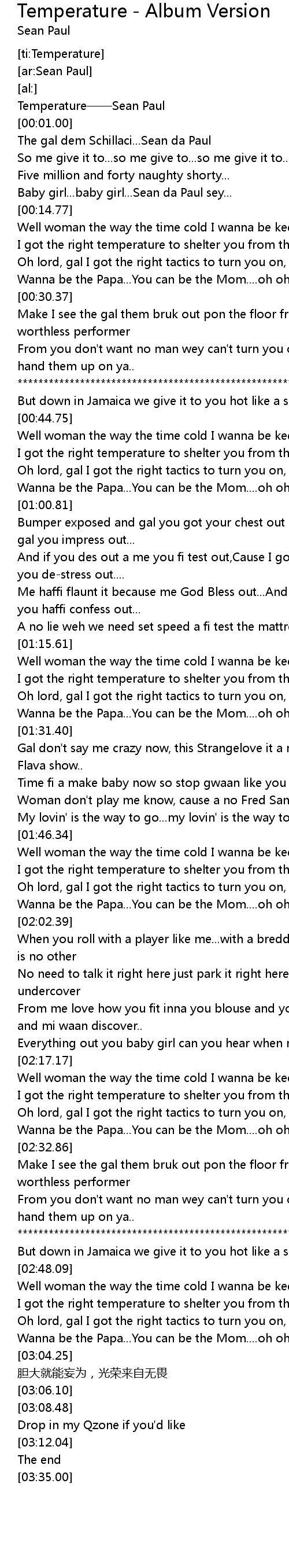 | [02:44.98] | But down in Jamaica we give it to you hot like a sauna.. |