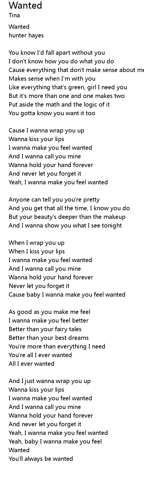 Cause baby I wanna make you feel wanted |