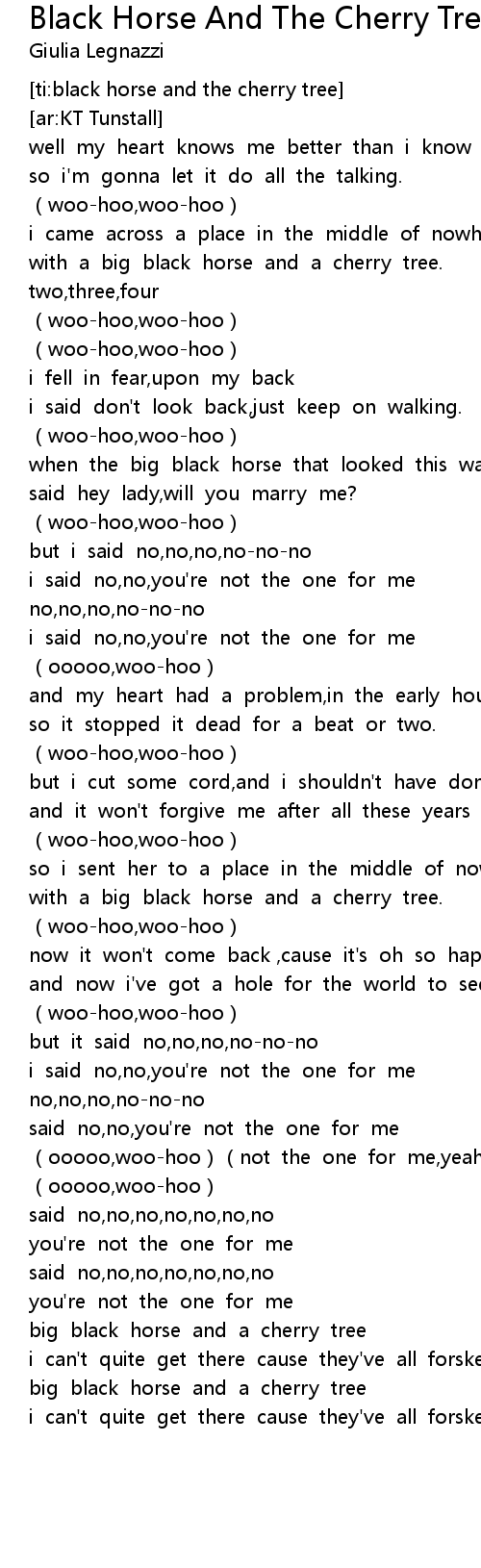 | [00:21.79] | with a big black horse and a cherry tree. |