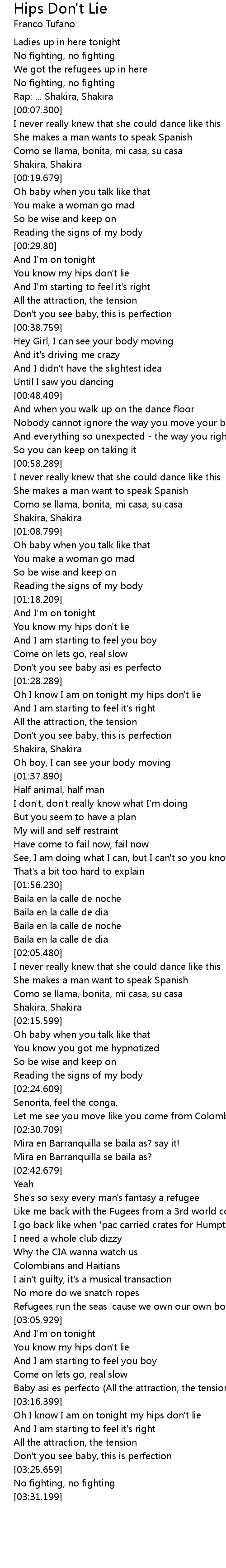 | [03:16.628] | Oh I know I am on tonight my hips don't lie |