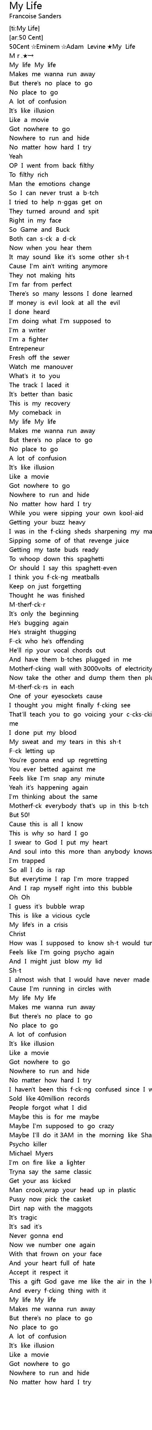 | [00:00.722] | 50Cent Eminem Adam Levine My Life |