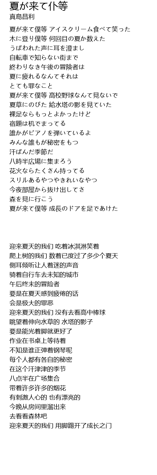| [03:55.443] | 夏が来て僕等 成長のドアを足であけた |
