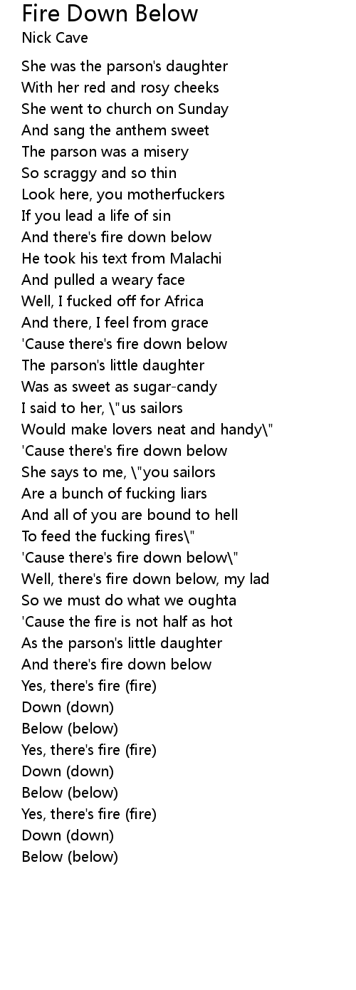 'Cause there's fire down below\" |