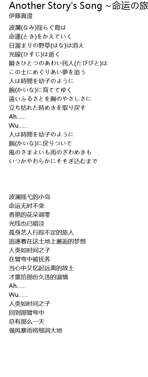 | [00:50.89] | 瞬きひとつのあわい民人(たびびと)は |