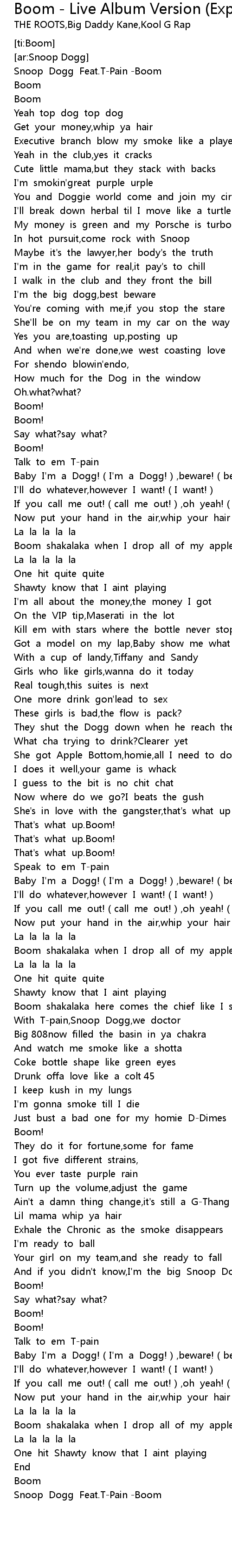 | [00:02.25] | Snoop Dogg Feat. TPain Boom |
