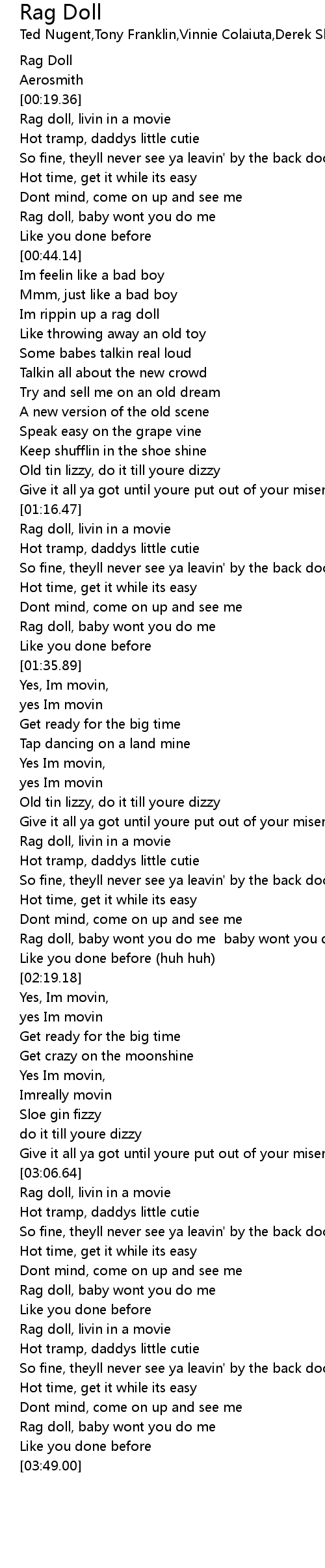 [02:14.30] Rag doll, baby wont you do me baby wont you do me....
