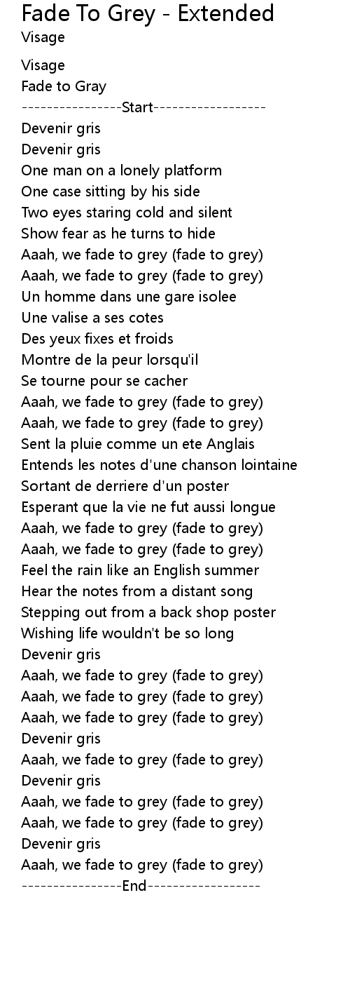 | [01:13] | Aaah, we fade to grey (fade to grey) |