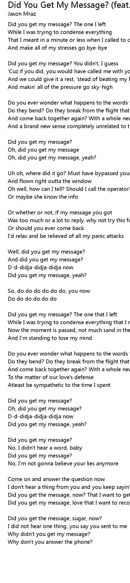 Did You Get My Message? (feat. Rachael Yamagata) Lyrics