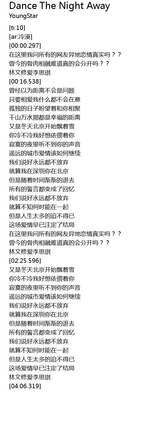| [02:46.851] | 你冷不冷我好想依偎着你 |