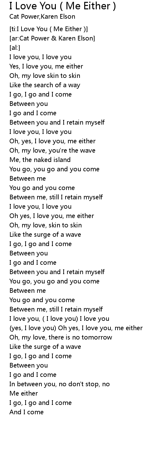 | [03:30.30] | yes, I love you Oh yes, I love you, me either |