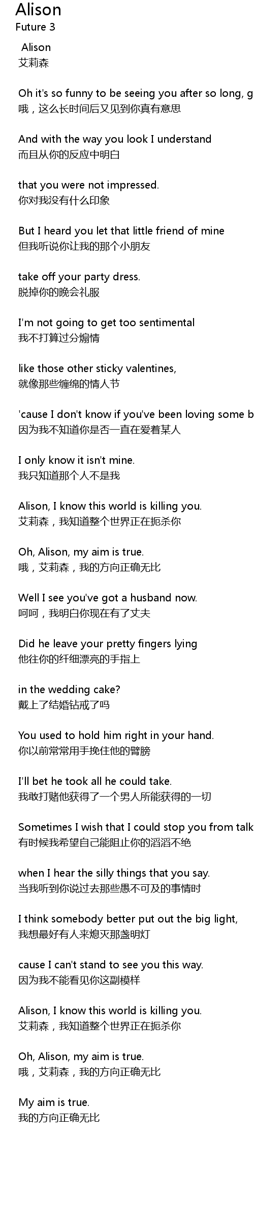 | 艾莉森,我知道整个世界正在扼杀你 | |