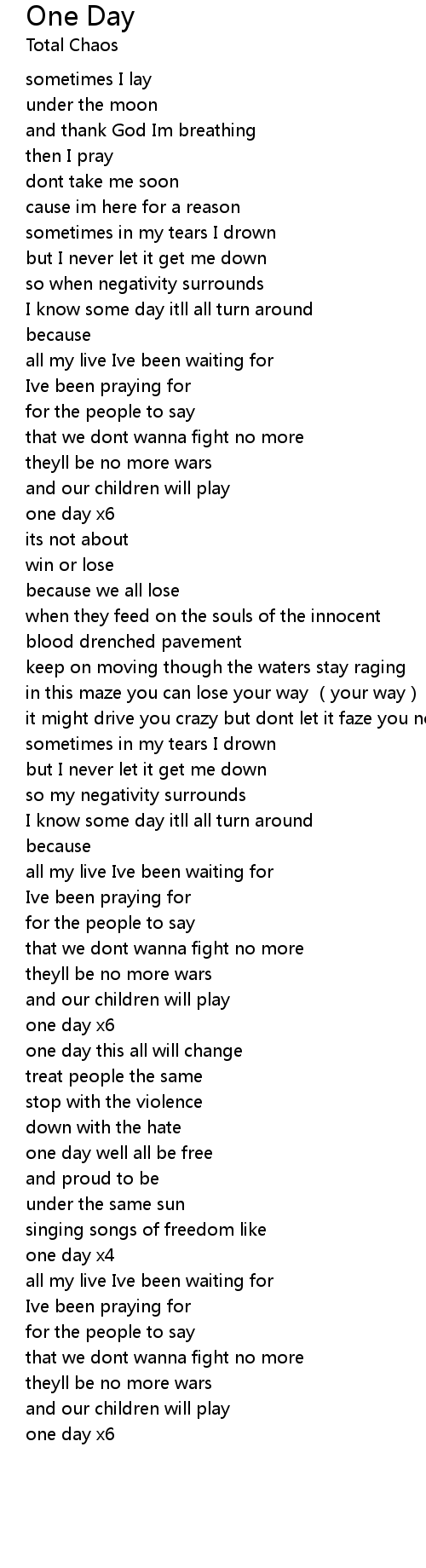 | [01:42.40] | I know some day itll all turn around |